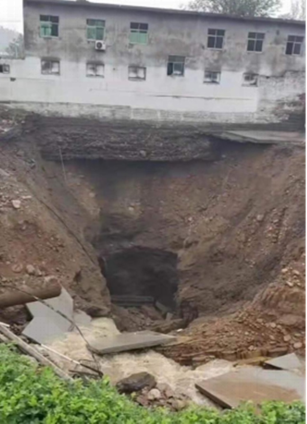 自7月17日以來(lái),河南遭受極端強(qiáng)降雨天氣,分公司駐地登封市白坪鄉(xiāng)遭遇歷史有記錄以來(lái)降水峰值。白坪鄉(xiāng)前期存在大量煤礦,地下存在采空區(qū),連續(xù)強(qiáng)降雨天氣造成白坪小區(qū)北側(cè)道路塌陷,目測(cè)塌陷方量1600m3,造成河道改道,洪水沿塌陷區(qū)倒灌入地下。7月21日上午10時(shí)許白坪分公司接到白坪鄉(xiāng)政府險(xiǎn)情通知,立即組織人員及設(shè)備趕赴現(xiàn)場(chǎng)進(jìn)行搶險(xiǎn)救援工作,調(diào)派挖機(jī)兩臺(tái)、汽車(chē)兩輛,其中一臺(tái)挖機(jī)去塌陷區(qū)進(jìn)行險(xiǎn)情處理,另一輛挖機(jī)配合汽車(chē)在礦山裝料運(yùn)輸至塌陷區(qū)。目前位于塌陷區(qū)處理險(xiǎn)情的挖掘機(jī)24小時(shí)不間斷作業(yè),力爭(zhēng)以最快速度排除險(xiǎn)情,不計(jì)代價(jià)配合當(dāng)?shù)卣龊梅姥淳葹?zāi)工作,做到央企在關(guān)鍵時(shí)刻的責(zé)任擔(dān)當(dāng)。  塌陷區(qū)  挖掘機(jī)到現(xiàn)場(chǎng)進(jìn)行初步作業(yè)  險(xiǎn)情處理工作初見(jiàn)成效 |