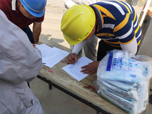 儀式開始前,寶豐分公司為全體員工發放醫用防護口罩并進行組織動員行動。