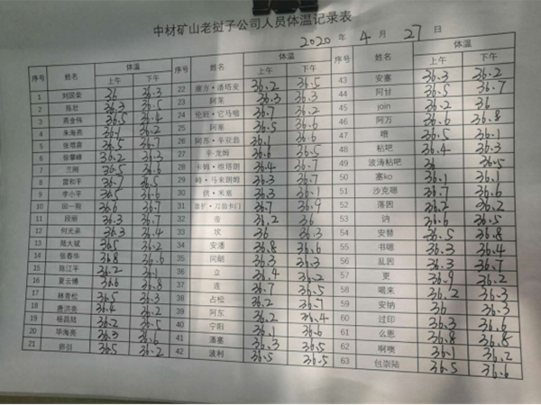 根據老撾衛生部2020年4月28日下午2點半的數據更新,老撾已經連續16日未出現新的新冠病例,從1月份到4月28日,累計檢測1815例,累計排除1796例,累計確診19例,累計治愈出院7例,現存12例,11例在萬象150友誼醫院,1例在瑯勃拉邦省醫院,均為輕微癥狀。 隨著新型冠狀肺炎在全球蔓延,疫情防控形勢異常嚴峻,老撾項目部按照公司統一部署,加強領導,高度重視,積極應對,采取有力措施,確保疫情防控和安全生產工作的順利進行。 一、成立疫情期間突發事件應急領導小組,建立健全安全防范工作機制,明確各小組成員職責劃分。 按照突發事件性質、機理和發生過程分類為突發聚集性疫情、醫療防疫物資采購和運輸受限、境外項目醫療防疫物資和生活物資儲備不能滿足需要、醫療防疫物資和生活物資遭哄搶、中方員工或中外方員工之間發生群體性事件、項目營地遭恐怖襲擊、人員緊急撤離回國、其他如綁架劫持等八類事件。根據項目所在地疫情形勢、社會治安狀況、物資供應情況等外部條件以及突發事件的性質、嚴重程度、可控性和影響范圍等因素,將項目疫情突發事件分為I級(特別重大)、II級(重大)、III級(較大)和IV級(一般)四個級別。并根據上述四個級別建立對應四級響應機制,建立相應應急預案并進行演練。 二、編制各項應急培訓 1.項目全員進行新冠病毒相關知識培訓,確保每人都能熟悉相關防疫知識。 2.防護措施、防護要領培訓,確保每名員工都能做好自身防護,并充分認識到做好自身防護的重要性。 3.特殊時期安保、安全意識再培訓,鞏固培訓。 4.進行各項專項應急預案演練工作。   開展培訓學習 三、采取各項預防措施 項目部本著“以人為本、預防為主、防治結合”的原則,牢固樹立“全員防疫”的思想意識。通過各種形式和途徑來宣傳疫情影響下可能帶來的突發事件及應對措施。 1.疫情預防 1.1實時掌控老撾和項目所在地的疫情增長情況,評估疫情風險。 1.2 疫情初期密切關注當地社會疫情發展對物資供應所產生的影響,不等不靠,主動作為,利用各類資源多途徑多渠道籌措物資及時儲存足夠防疫、生活物資。 1.3 優化各生產工種人員,精簡部分當地員工、精簡一些非必要崗位且傳播風險高的當地員工,如食堂幫工、項目駐地清潔工等。 1.4 優化現場生產工作流程,減少或避免一些非必要的中方員工與當地員工接觸交流情況。 1.5 給當地員工配備口罩、護目鏡、手套等防護用品,上下班體溫監測。 1.6 項目駐地、辦公場所、生產場所、生產生活車輛設備等每日定時定點消毒。 1.7 制定項目疫情防控規定,對防護物品佩戴、體溫測量、距離保持、聚餐等行為進行嚴格規范和要求。 1.8加強職工食堂、員工宿舍的衛生管理,防止交叉感染。 1.9 當地采購的生產生活物資嚴格執行開箱前送貨車輛消毒、開箱后貨物消毒、入庫后再消毒多次全方位消毒措施。   部分雙語宣傳頁   部分防疫物資  體溫記錄表 2.其他突發事件預防 2.1以適當的渠道溝通工程毗鄰居民關系。尊重當地員工,平等相待,和睦共處;人員雇傭時,要兼顧所在地各社區利益,避免社區麻煩。項目駐地嚴格實行封閉管理制度,非上下班期間,禁止任何人員外出駐地。 2.2建立并保持與工程項目所在地政府機構、治安機構的聯系渠道。 2.3關注工程所在地和毗鄰地區社會治安動向。發現工地、駐地周邊有可疑情況,及時采取應對措施并向我國使(領)館和當地政府報告。 2.4 精簡當地員工時,并就工資、勞工補償等達成協議,避免當地員工出現群體性事件。 2.5礦山增加夜間照明設備,安排人員24小時值班,防止偷盜、搶劫等。 2.6與員工開展談心活動,穩定員工的思想和情緒;項目部領導和安全主管要定期或不定期與當地雇員、司機交流,了解其思想動態,一旦發現有不好的苗頭,應立即采取措施。 2.7告誡司機無特殊情況上下班中途不準停車,不準搭載其他人乘車。要求司機定期檢查車輛狀況,發現問題及時報告處理,不允許車輛帶病行駛。 2.8完善生活區安防設施,增加攝像頭、夜間照明、加固圍欄鐵絲網。 2.9為境外人員購買合適的海外人身意外傷害保險。 四、應急社會資源及物資采取措施 1.建立并保持中國駐老撾大使館的溝通渠道。 2.建立并保持與項目部所在地的疾控中心、衛生機構、定點收治醫院的聯系渠道。 3.建立并保持與項目部所在地的政府、警局等治安防治機構的聯系渠道。 4. 密切關注老撾境內的疫情發展對醫療防疫物資所產生的影響,不等不靠,主動作為,利用各類資源多途徑多渠道籌措物資,及時充足充分儲存防疫物資。 5.對各類醫療防疫物資分類儲存,建立臺賬,加強領用管理,確保物資使用安全、高效、透明。對酒精、消毒劑單獨存放,避免發生火災。 6.項目駐地配置一定數量的隔離室,用于發燒疑似人員隔離檢測。 7.大米、面粉、肉類、調味品、煤氣等必備生活物資存儲應滿足至少兩個月,做好安保工作,防鼠防變質,并根據每日使用情況繼續采購。 8.財務部門要根據有關規定和應急需要提供專項充足的資金保障。 老撾項目部疫情防控工作任重道遠,責任重大,不能有絲毫的松懈和麻痹,今后仍將密切關注老撾疫情發展情況,嚴格按照公司的疫情防控的各項要求,堅決貫徹實施上述預防措施,保障職工的生命健康,確保安全生產。 |