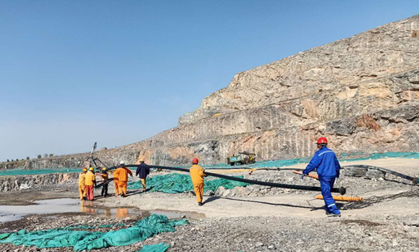 在嚴峻的環保形勢下,為了更好的控制灰塵對大氣環境的污染,棗莊申豐水泥礦山在各個采礦平臺鋪設了噴射系統,對正在進行挖裝的作業區都配置了降塵水炮。因每組水炮都有一定的噴射范圍,現場管理人員根據現場礦石開采及裝運情況,經常需要對噴射裝置及管路進行挪移。
