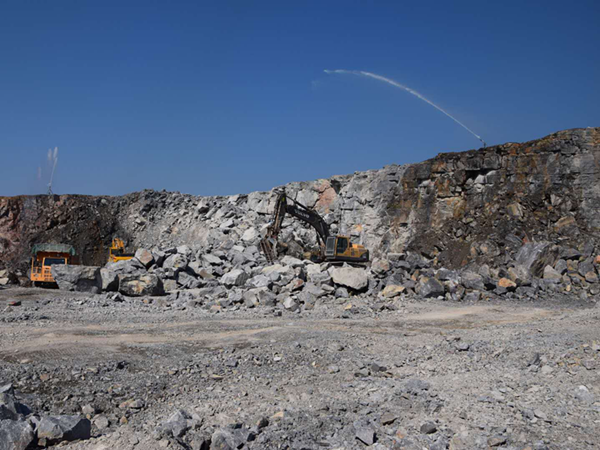 為了最大限度地改善礦山開采對空氣環境的污染,我們礦山工作人員不辭辛苦地一次又一次拆裝噴射管路、搬移水炮噴頭支架、牽拉控制電磁閥電源線。只要礦石裝運到哪,就讓噴槍噴灑到哪,將礦石爆堆噴濕,決不讓挖機、破碎錘等設備在工作過程之中揚起灰塵,不讓灰塵彌漫到空氣之中。每當抬眼望向我們頭頂的天空,看到一片片的藍天白云,所有流過汗水的臉龐都露出了欣慰的笑容。