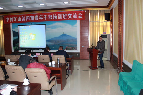 123800在駐地賓館會議室進行綠色礦山建設主題匯報中材礦山行政總監李先軍主持會議