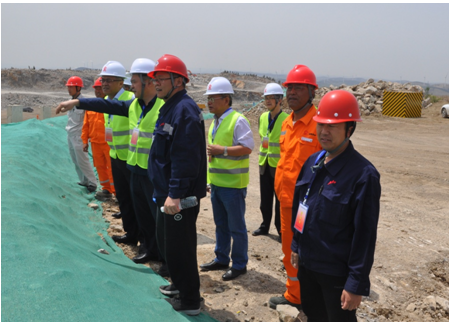 5月6日,吉林天池鉬業有限公司領導在平陰山水水泥有限公司,黨委書記侯福存、兗州中材建設有限公司總經理柯升、副總經理張蘭青的陪同下,蒞臨兗州中材平陰分公司礦山施工現場參觀指導。