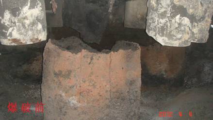 兗州中材建設有限公司云維項目部 實施石墨電極分解爆破 4月4日,應云維乙炔化工有限公司(業主)要求,我項目部對其廠區1#電石爐內石墨電極成功實施分解爆破。 本次爆破點位于業主電石車間二層電石爐內,技術人員和安全員經現場勘查發現:石墨電極為直徑1.2m、高約1.5m的圓柱狀石墨體,從中心呈輻射狀均勻分布12塊約1cm厚鋼板。三個電極呈“品”字狀分布在一個直徑約7~8米的幾乎密閉的鋼制反應爐內(有洞口)。爆前充分勘察了爆區周圍的實際情況,結合從網絡上搜集的對石墨電極的性能分析和以往的爆破經驗,選用合適的爆破器材,擬定了幾種爆破方案。充分分析爆破方案的可行性后,選擇其中可行性較高的兩種方案進行了試爆,結合兩次試爆效果,經調整爆破參數后,最終成功拆除。 本次爆破對僅隔約10米遠、正在生產的2#爐和庫房未產生任何影響。 這次爆破工作雖小,但我們本著謹慎、科學的態度對待。從爆破參數的選擇到安全警戒都認真小心,取得了預想的效果。 通過這次爆破,積累了對巖石以外材料的爆破經驗,也增加了我項目部尤其是年輕人工作技能。也到了業主的認可。 孟永旺