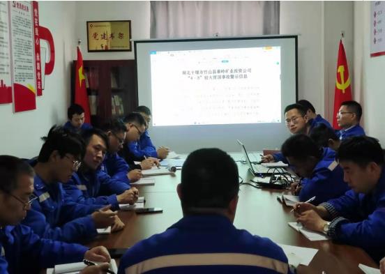 會議開始,安全員趙曉斌宣讀了湖北十堰市竹山縣秦嶺礦業投資有限公司“4·8”較大冒頂事故警示信息。之后共同觀看了非煤礦山企業事故案例“錫林郭勒盟西烏珠穆沁旗銀漫礦業有限責任公司2.23井下車輛傷害重大生產安全事故”和“重慶永川區金山溝煤礦10.31特大爆炸事故”。