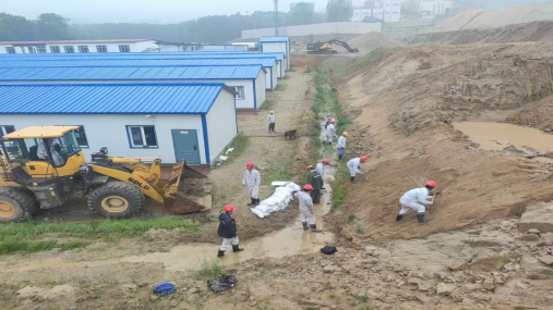 2022年6月20日早6點,接應急管理部門通知吉林地區預計未來24小時內將有強降雨,舒蘭分公司項目經理宋憲軍緊急通知各科室人員,組織對現場、生活區、炸藥庫、維修車間等地點進行了防汛設施檢查。生活區東側邊坡被臨近公司時候后未進行修整,加之連續降雨一整夜,東側邊坡垮塌,淹沒排水溝,造成堵塞。