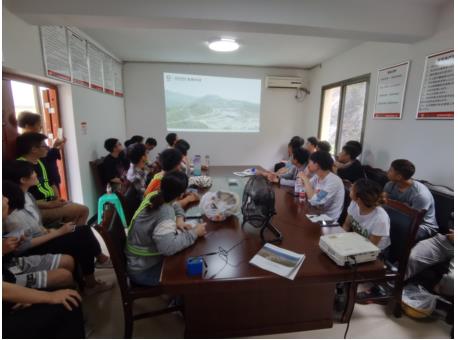 為了讓學生們進一步了解礦山,18日上午,分公司專職安全員向學生進行入場安全告知以及礦山情況的簡要講解,讓學生對礦山生產現場、開采方式和工藝流程有了一定了解,為確保學生實習期間人身安全,分公司安排專人全程帶領并隨時為他們答疑解惑。