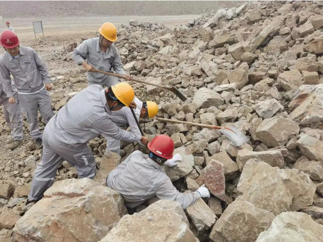 上午10時整,演練正式拉開序幕。假設情況是該露天礦山某區域發生了邊坡坍塌,造成一名作業人員腿部受傷被困。接到報告后,項目副經理楊宇立即啟動應急預案,迅速組織了由醫療救護組、應急搶險組、警戒保衛組、物資保障組等部門人員組成的應急救援隊伍,攜帶救援裝備,迅速趕赴事故現場。同時,通訊保障組也迅速建立起臨時通訊網絡,確保現場信息暢通無阻。