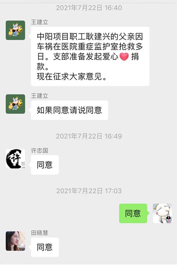 呂梁分公司某員工的父親因車禍住進ICU搶救多日,每天開銷巨大。中陽文水黨支部經過全體會議通過發起愛心捐款活動。