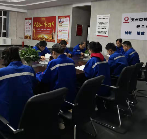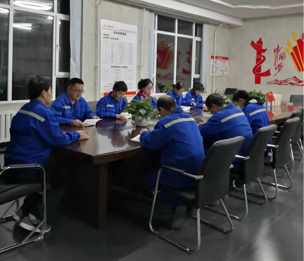 20191124日晚,舒蘭項目部組織開展學習十九屆四中全會精神主題日活動,宋憲軍同志帶領項目部黨員和員工共同學習《中國共產黨第十九屆中央委員會第四次全體會議公報》。