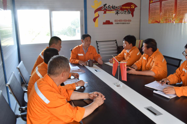 在中國共產黨成立98周年之際,兗州中材建設有限公司江油分公司召開慶祝中國共產黨成立98周年“不忘初心,牢記使命”專題紀念活動。期間支部書記宋經理帶領支部成員通過重溫入黨誓詞、表彰先進、樹立標桿,進一步提高黨員的凝聚力和戰斗力。激發廣大黨員吃苦耐勞的工作熱情,充分發揮黨員先鋒模范作用。