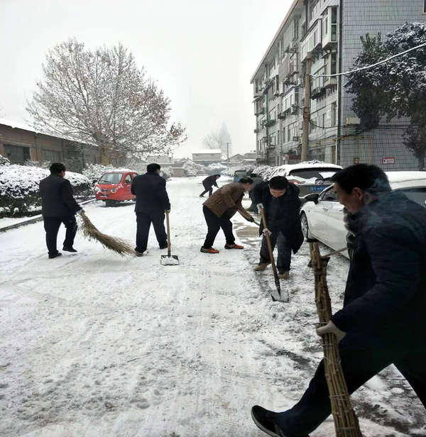 然而大雪的降臨也給大家的出行帶來(lái)諸多不便,公司基地大門(mén)口、辦公樓前、生活區(qū)的道路都被皚皚白雪覆蓋,尤其是給老人和孩子的出行帶來(lái)的不便尤甚。上午上班時(shí)間還不到,兗州機(jī)關(guān)黨支部書(shū)記李增光第一個(gè)拿起了掃帚,來(lái)到辦公樓前掃起了雪,行動(dòng)就是無(wú)聲的號(hào)召,公司機(jī)關(guān)的干部職工都不約而同的拿起掃帚鐵锨,加入到掃雪的大軍。鐵锨和地面的碰擊聲、掃帚清掃雪花的刷刷聲,不一會(huì)兒辦公樓前的積雪已蹤影全無(wú),然而大家并沒(méi)有停住腳步,繼續(xù)向大院深處走去,球場(chǎng)、院門(mén)、居民樓前......所到之處,雪沒(méi)了,路干凈了,路過(guò)的人們紛紛投來(lái)贊許的目光,掛滿(mǎn)枝頭的冰凌隨風(fēng)婆娑起舞,似乎也在點(diǎn)頭稱(chēng)贊,大家的心中更是無(wú)比的欣慰,雖然臉紅了、出汗了,但累并快樂(lè)著。
