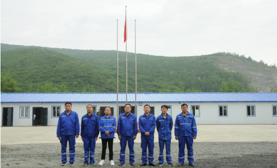 2022年7月1日, 兗州中材和龍分公司在Ⅳ號礦組辦公生活區舉行“升國旗、唱國歌”儀式,風展紅旗如畫,砥礪初心如磐。